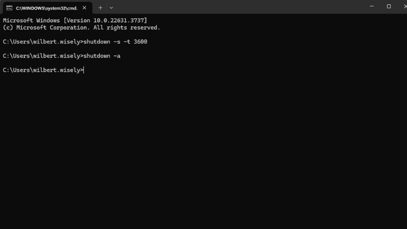 • Jika kamu ingin mematikan komputer dalam 1 jam maka ketik ‘shutdown -s -t 3600’ di mana 3600 detik merupakan 1 jam.