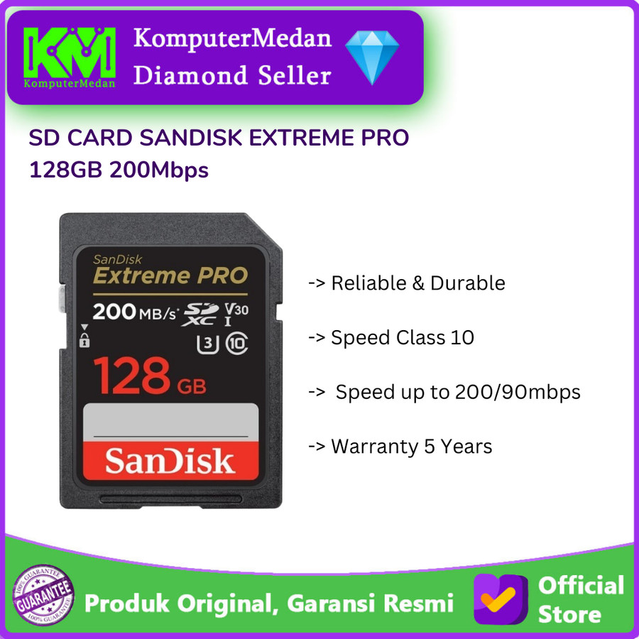 SanDisk Extreme PRO SDXC UHS-I Card 200MBps adalah kartu memori yang patut dipertimbangkan. Kemampuan baca hingga 200MB/s dan tulis hingga 90MB/s membuat transfer file dari kamera ke komputer menjadi secepat kilat.